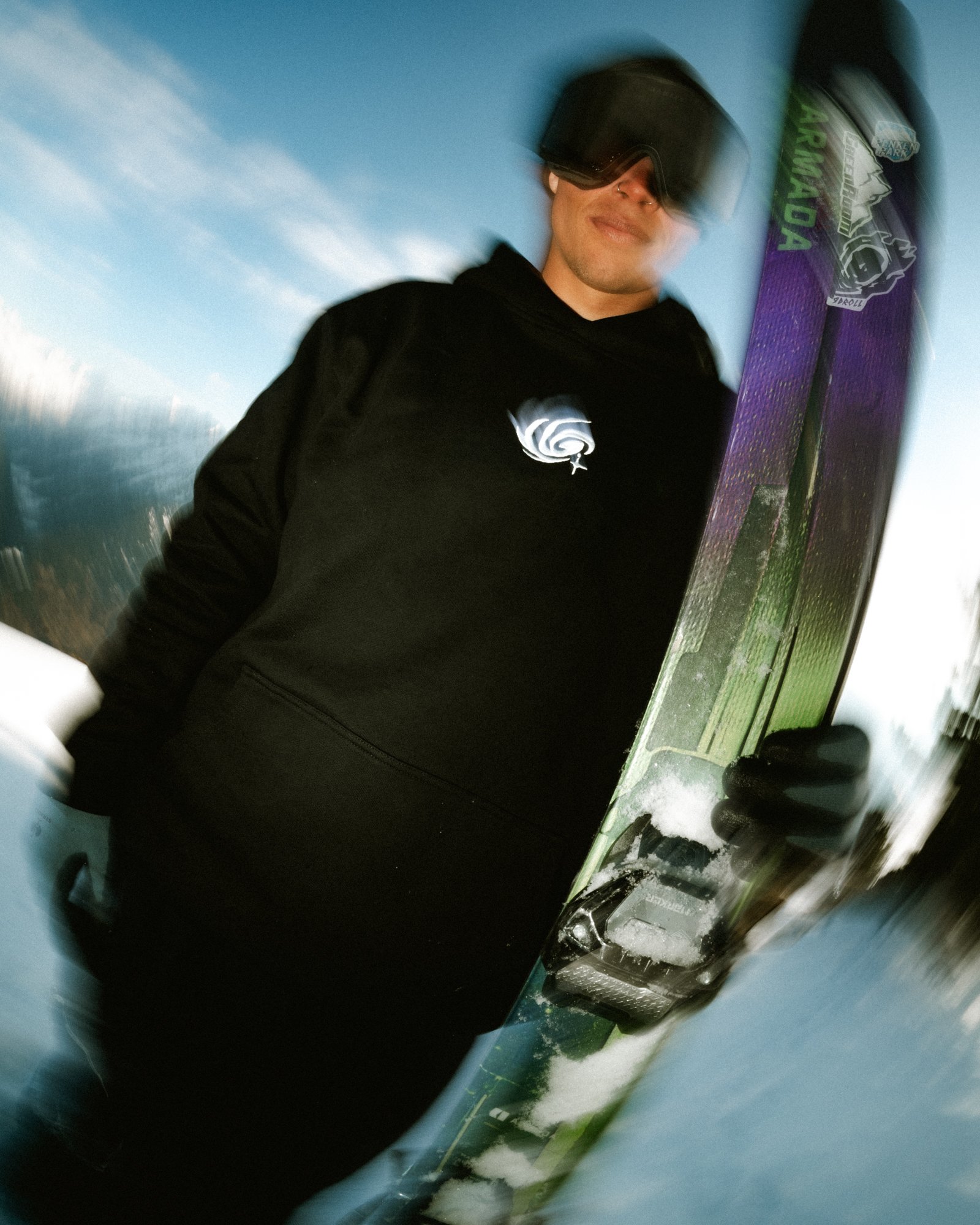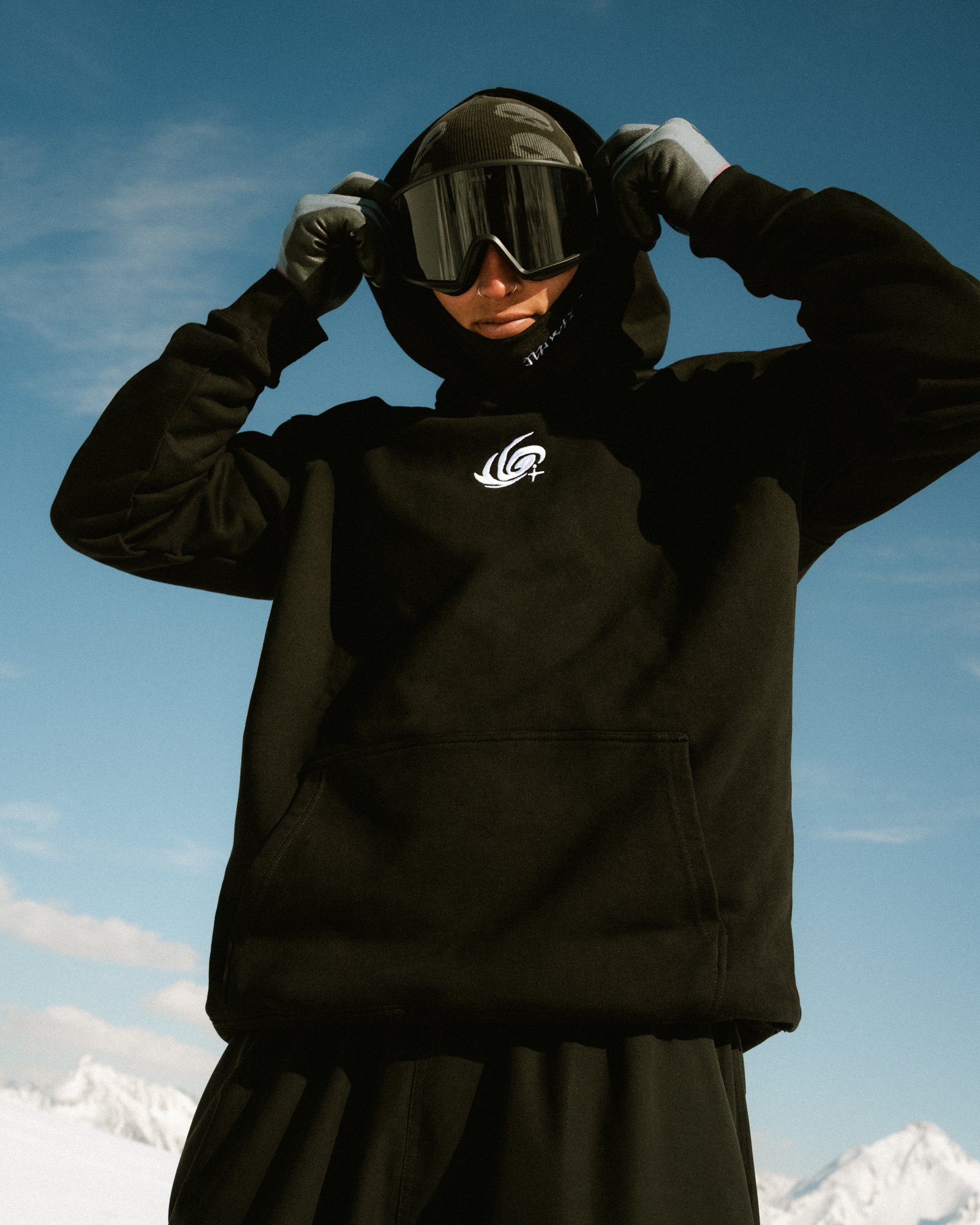 The Cotton Coldline Hoodie is crafted from 490gsm heavyweight cotton. The dense fabric holds its shape while remaining comfortable for daily wear or warm ski runs.