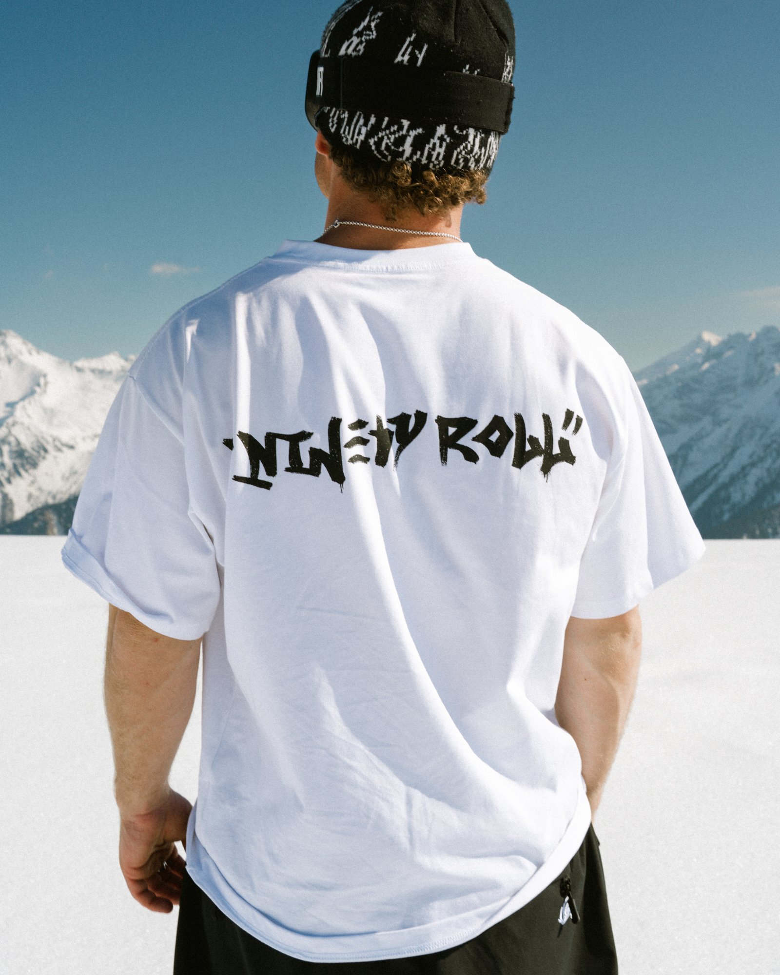 It features a swirl-inspired NR embroidery on the front and a high quality “NINETY ROLL” print on the back.